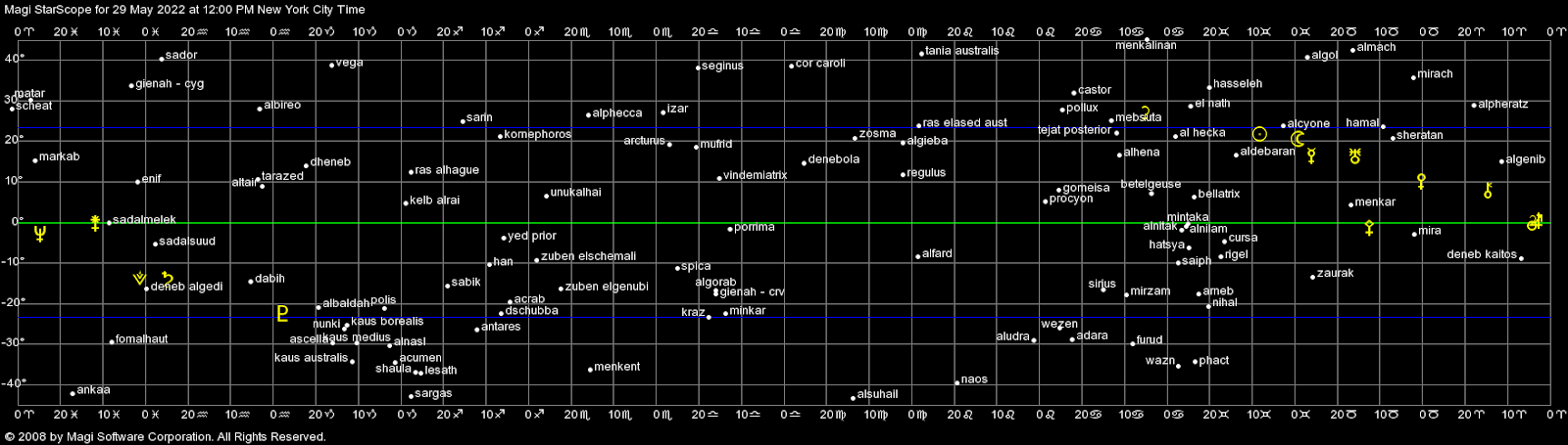 **Conjunctions to Select Fixed Stars on Mai 29, 2022.**