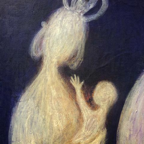 A slant-eyed Chinese woman is nursing a baby, and about the child is the glorious nimbus of divine incarnation.